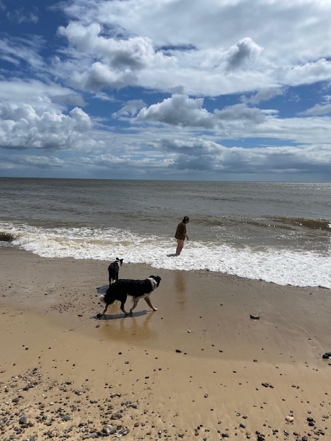 Cousin Berenice visited East Lodge for the first time. Naturally we gravitated towards the sea, south cove to see sand martin’s and a disappearing coast. Wonderful to swim in the sea for the first time this year. I wouldn’t have done it on my own, the waves strong and I increasingly weak I notice.