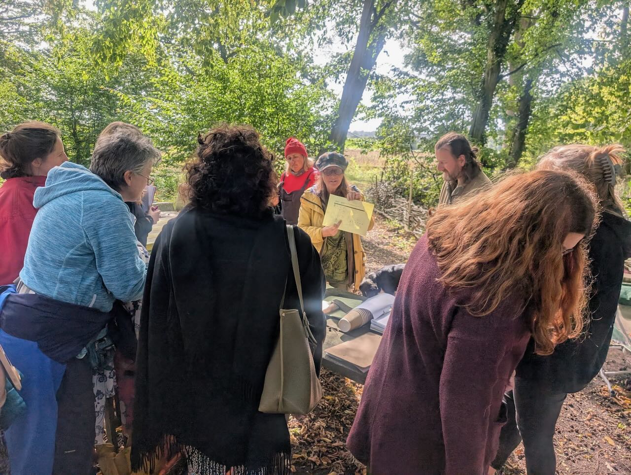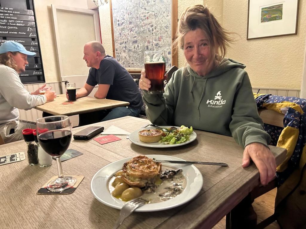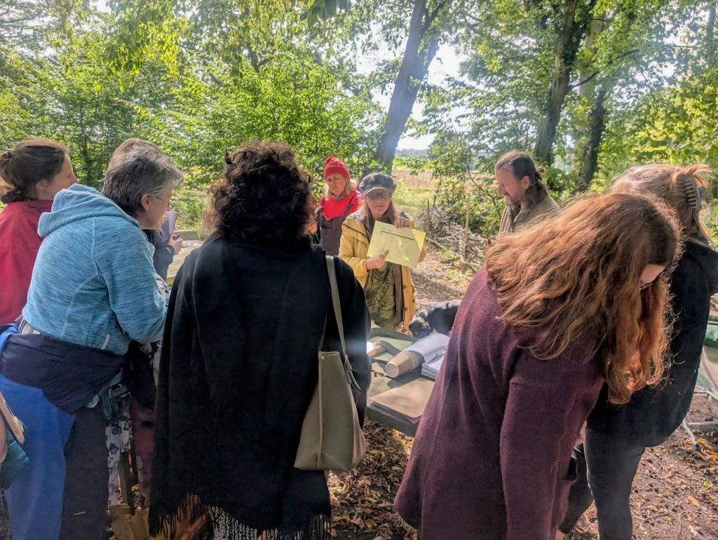 That first evening we walked the land to find some chard for dinner, over which we caught up a few years, mostly Martina’s current energetic travel. She spends only 20% of the year now in Berlin, the rest in their Portuguese home and mostly on an ambitious adventure around the world, often South America, and with her husband Magnus. What have you found, I asked her, after visiting all these different lands and people? That all people, although conditionally different, are fundamentally the same, was her response. The following day she spent with Julia as I prepared the wood and met a friend, but she returned for an evening film at the Cut – Magnolia. (Guardian: an anthology of broken lives – each interleaving with the other in a lattice of ill omen and disquiet). Neither of us slept much that night (I disturbed by the news of the assassination of Charlie Kirk and fearful of the consequences). In the woods Martina joined in journey around Kaliwood with students of Forest School learning of woodland management. There is a photo of us all in the WW2 mens urinals, the extant archeology in the wood. We ended with a thoroughly enjoyable easy evening meal at the Star, Wenhaston, in which we explored any regrets or rather moments in which we may have taken different paths in our lives: we were born in the same year and about to reach 70, so patterns become more obvious, the body becomes less flexible. Julia met us at Halesworth station to say good bye as Martin left for Portugal where later that day she would be enjoying oysters. Indeed she sent me a photograph!