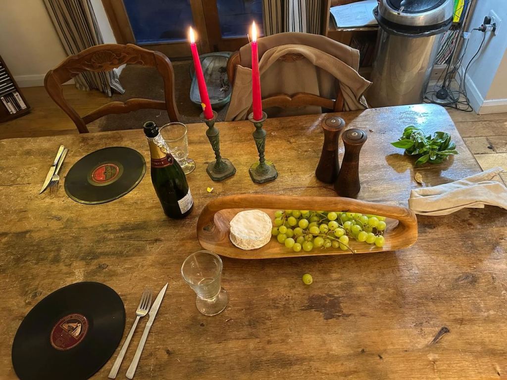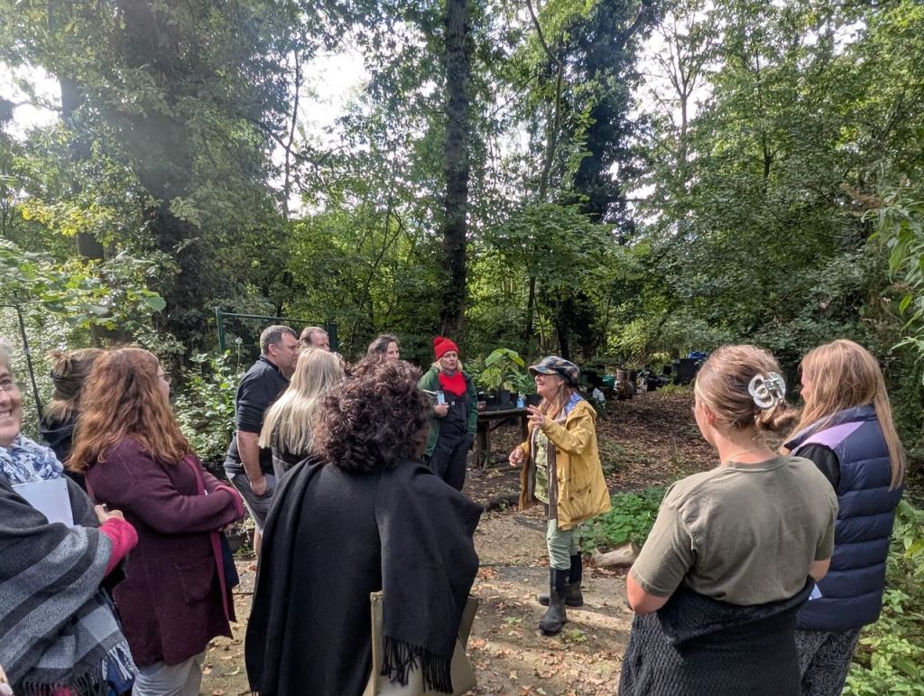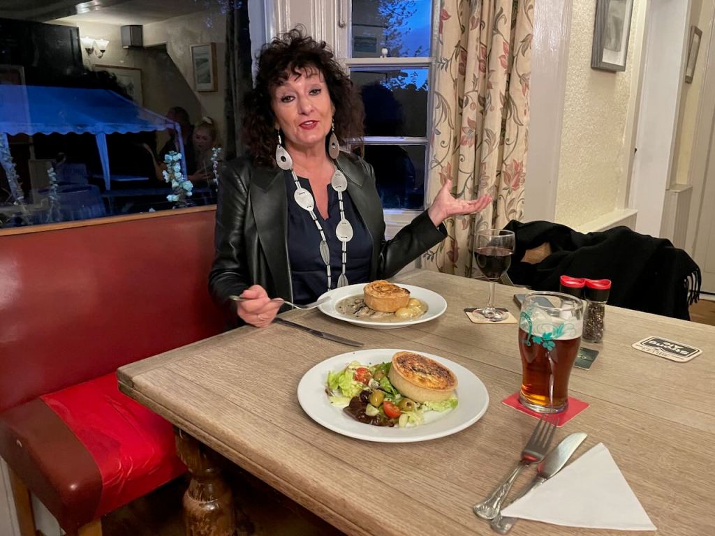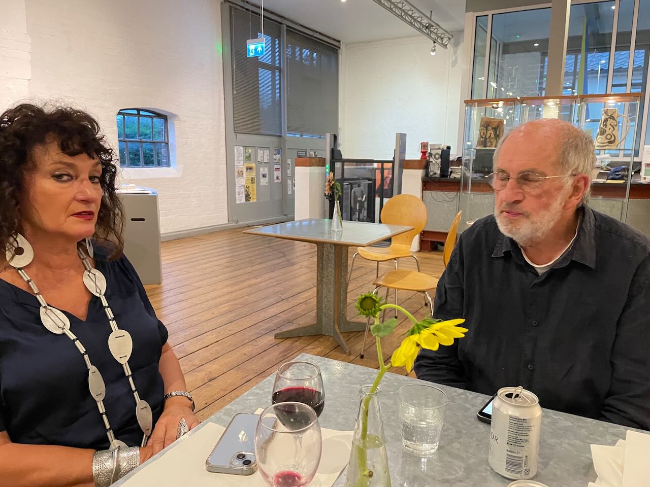 That first evening we walked the land to find some chard for dinner, over which we caught up a few years, mostly Martina’s current energetic travel. She spends only 20% of the year now in Berlin, the rest in their Portuguese home and mostly on an ambitious adventure around the world, often South America, and with her husband Magnus. What have you found, I asked her, after visiting all these different lands and people? That all people, although conditionally different, are fundamentally the same, was her response. The following day she spent with Julia as I prepared the wood and met a friend, but she returned for an evening film at the Cut – Magnolia. (Guardian: an anthology of broken lives – each interleaving with the other in a lattice of ill omen and disquiet). Neither of us slept much that night (I disturbed by the news of the assassination of Charlie Kirk and fearful of the consequences). In the woods Martina joined in journey around Kaliwood with students of Forest School learning of woodland management. There is a photo of us all in the WW2 mens urinals, the extant archeology in the wood. We ended with a thoroughly enjoyable easy evening meal at the Star, Wenhaston, in which we explored any regrets or rather moments in which we may have taken different paths in our lives: we were born in the same year and about to reach 70, so patterns become more obvious, the body becomes less flexible. Julia met us at Halesworth station to say good bye as Martin left for Portugal where later that day she would be enjoying oysters. Indeed she sent me a photograph!