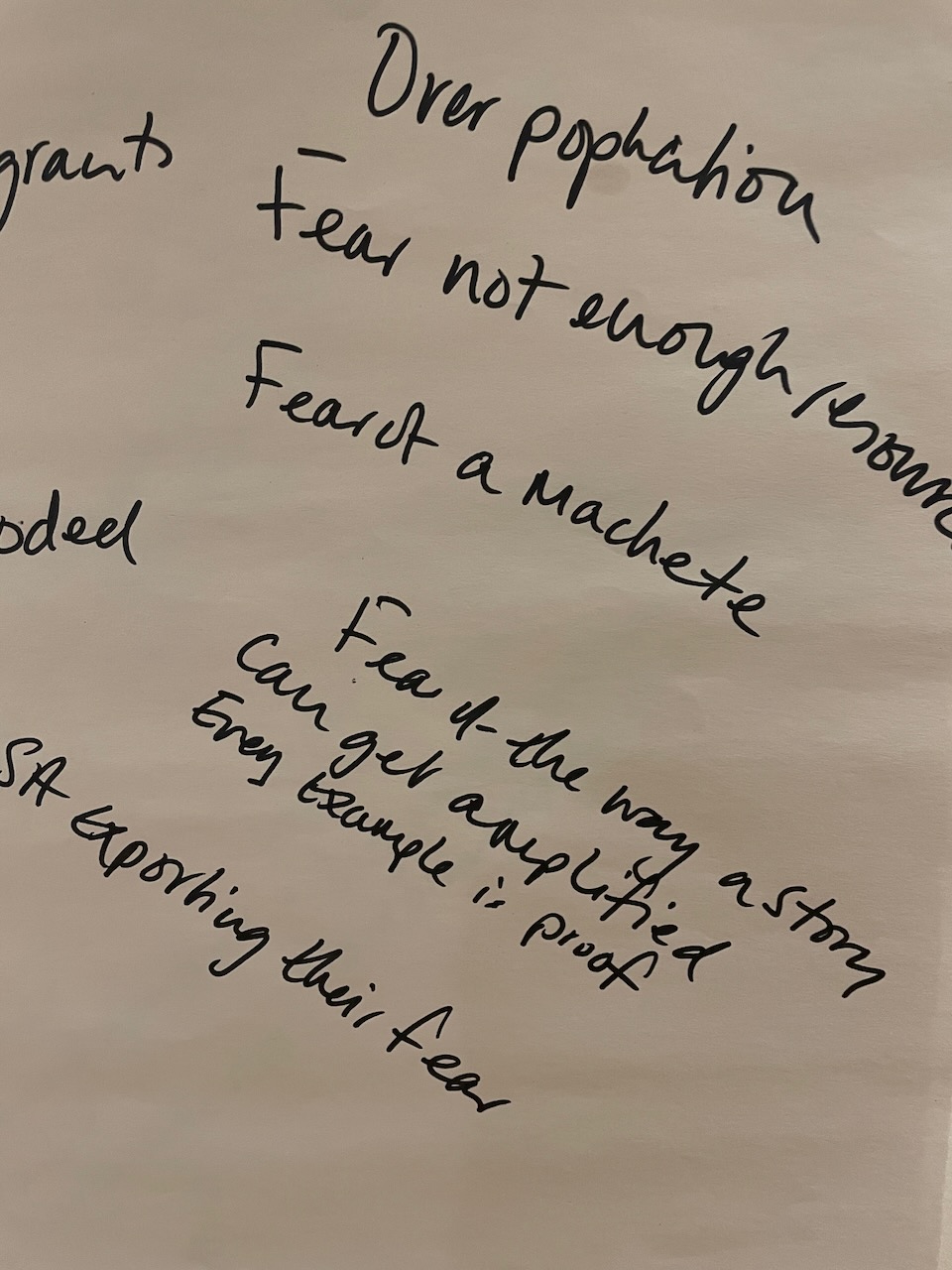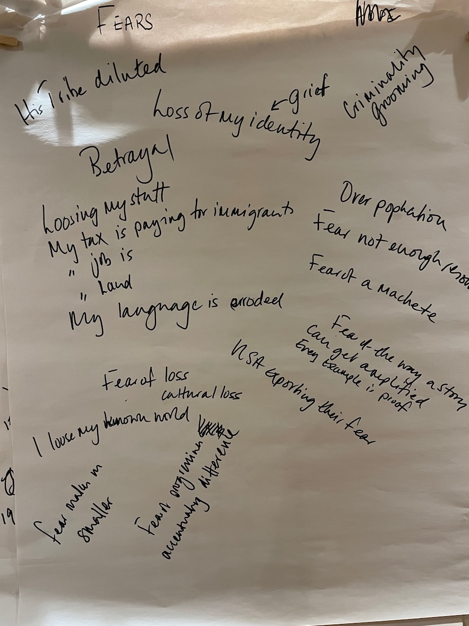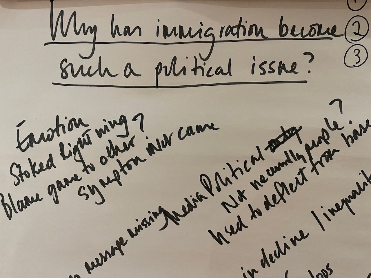 The 3 hours we had used an element of the Socratic Dialogue form, by inviting us to share our own direct experience of migration / immigration. This took a good hour with 16 fascinating and rich stories, in which sometimes surprisingly we found we all had some direct often family related experience of migration which we could relate to.