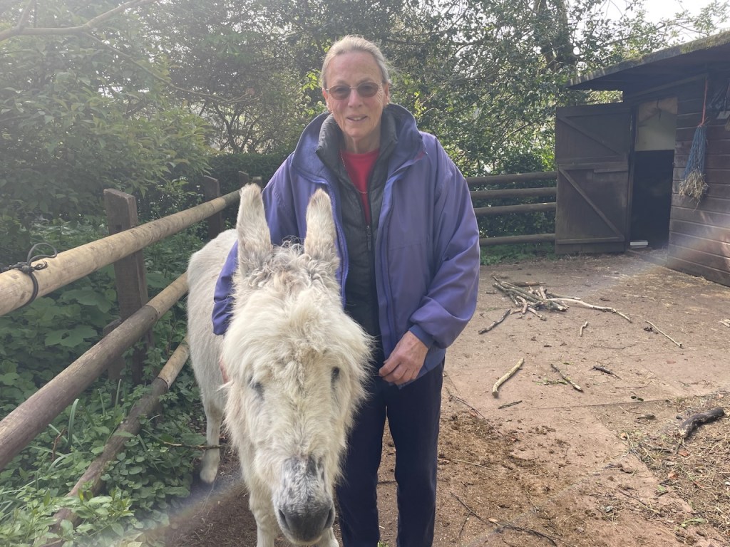 And she was. As soon as I entered the back gate i knew I was in a place of beauty. Huge beech and pin trees (not pollarded as is the fashion down here), a rambling garden semi wild, a wheel barrow at the ready for the days attention. ‘I’ve just got to find to the donkey’ she explained to me, after i’d relayed my reason as a stranger knocking on her door on a Sunday morning. Jacob the donkey was indeed eager to see her, and receive the food she had prepared earlier together with some leaves cut. Aged 27, he looked most content here in her garden, despite the laminitis.